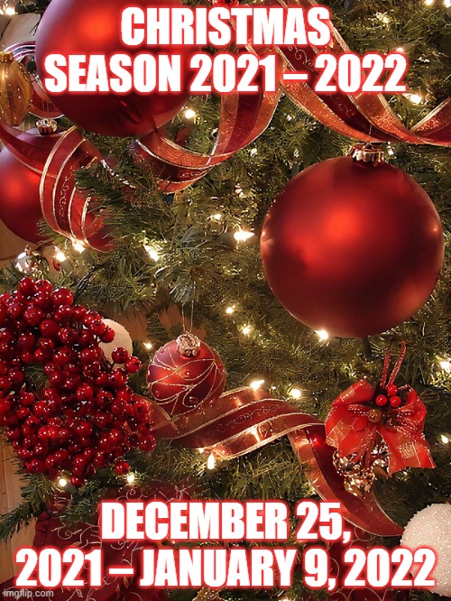 For December 25, 2021, Christmas Season December 25 to January 9