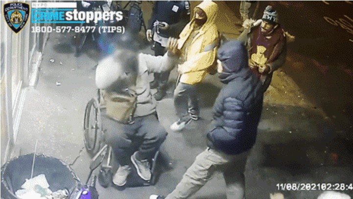 Four people attack a man sitting in a wheel chair. (NYPD)