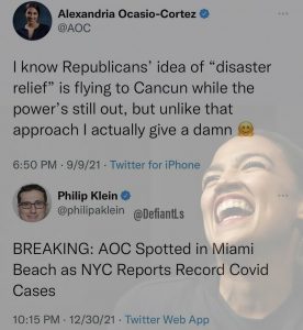 Alexandria Ocasio Cortez slams Cruz for going to Cancun but she went to Florida when New York’s COVID cases jumped