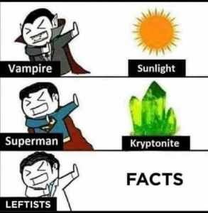 Leftists react to facts the way superman reacts to kryptonite and vampires react to sunlight