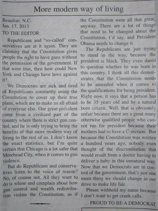 2. What a toolbag… I really hope that is someones well made up spoof of a letter in a newspaper. I would hate to think that we have sheeple that stupid voting in this country. Hell, the very fact they are breathing could only be attributed to it being an involuntary function of the brain.