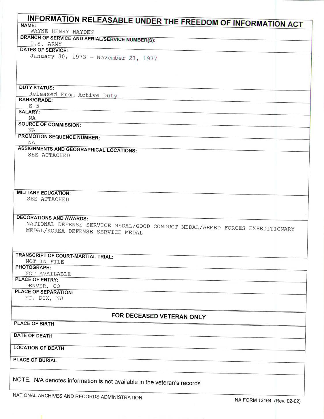 Wayne Henry Hayden FOIA