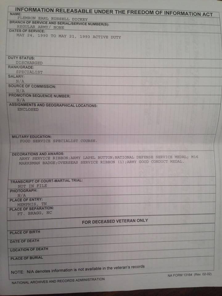 5 thoughts on “Ron Dickey FOIA