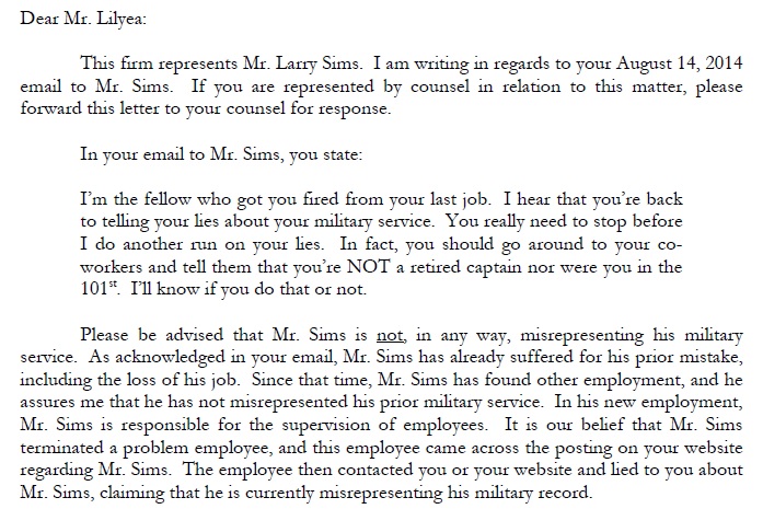 Larry Sims letter