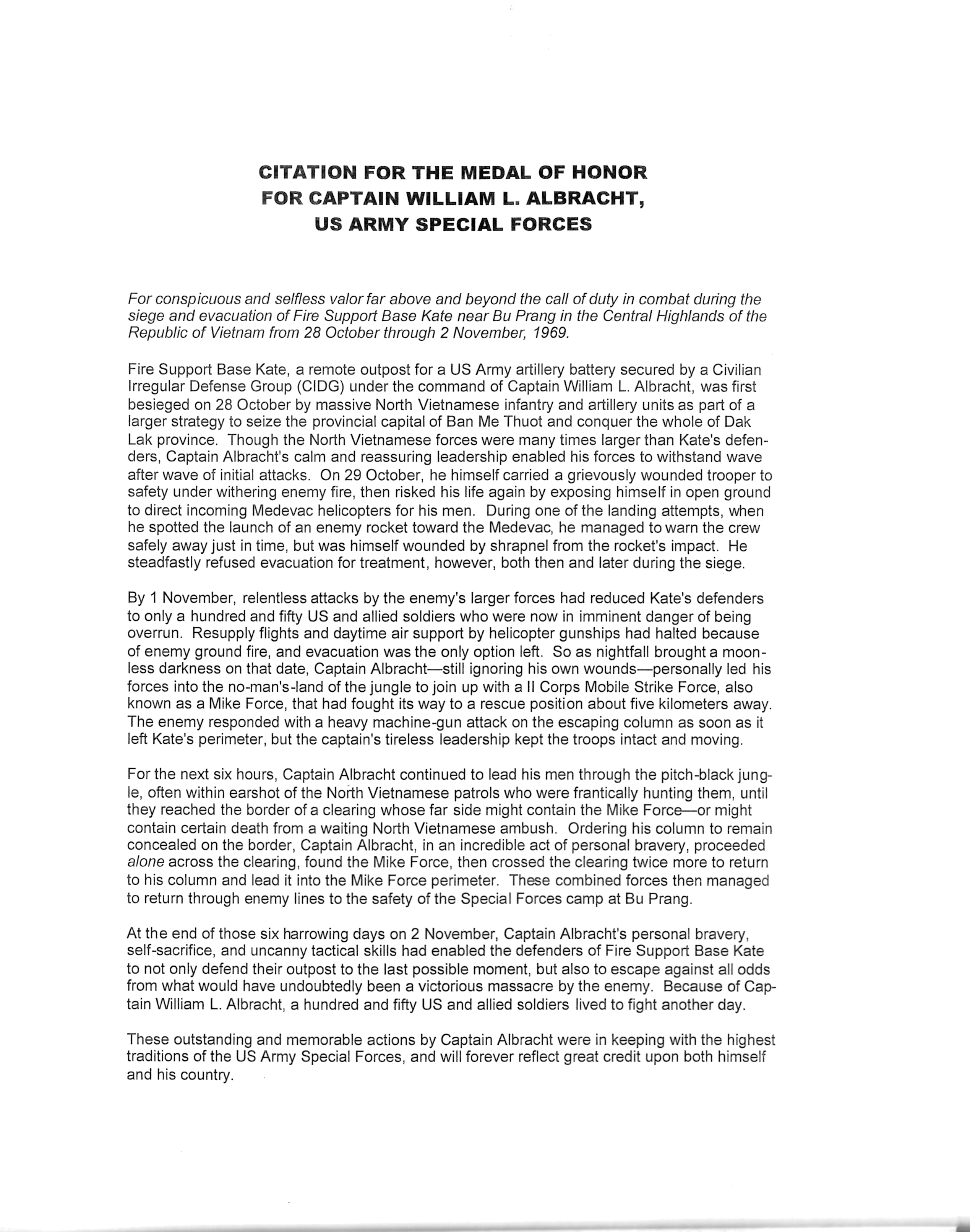 Albracht MoH citation