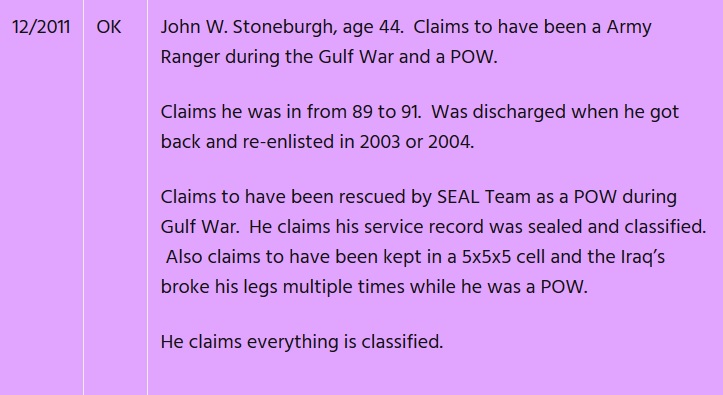 John W Stoneburgh POW Net