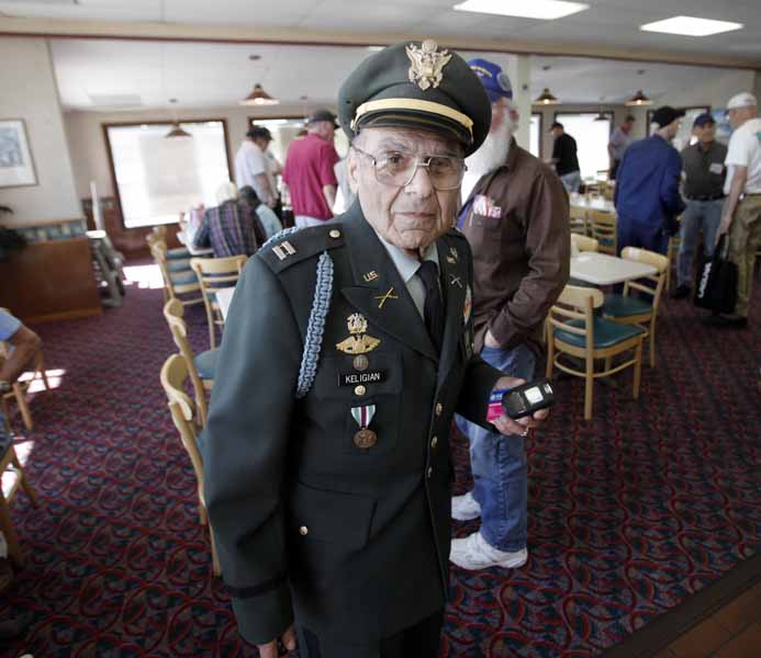 Leo Keligan makes his way through Wendy’s during a Wings over Wendy’s meeting. The WW II fliers meet every monday at Wendy’s in West Hills to swap stories as they eat breakfast at the restaurant. (Hans Gutknecht/Staff Photographer)