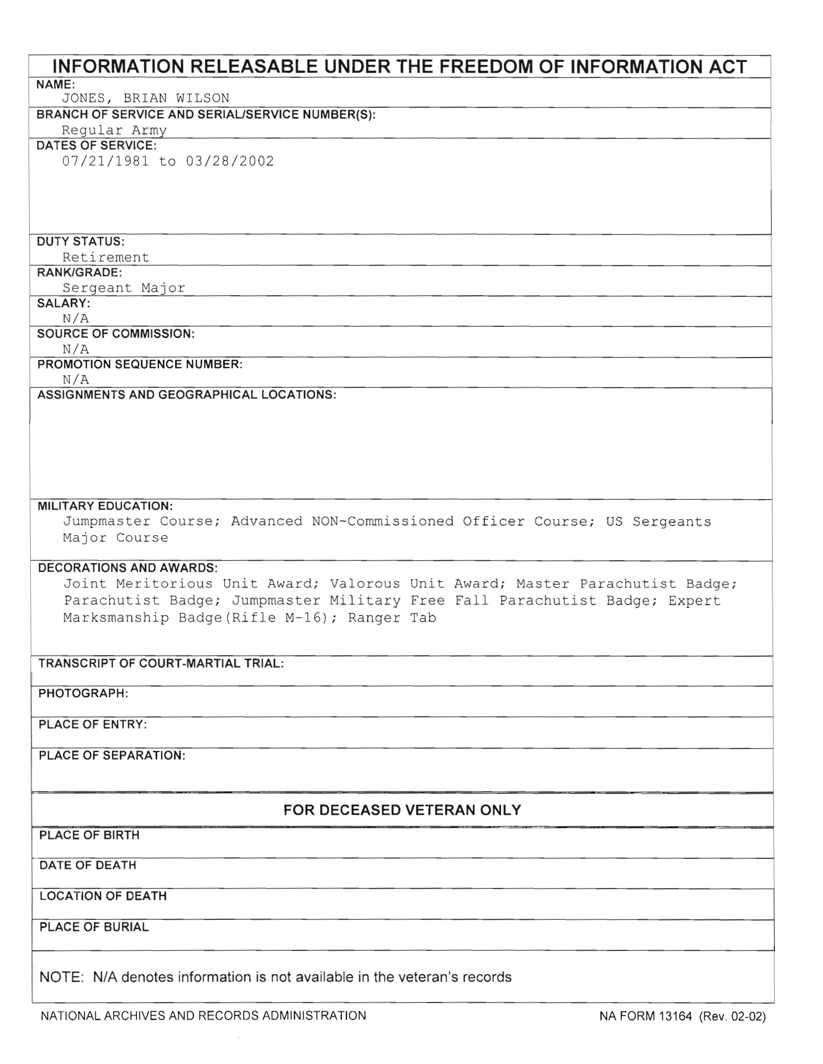 Brian Wilson Jones FOIA