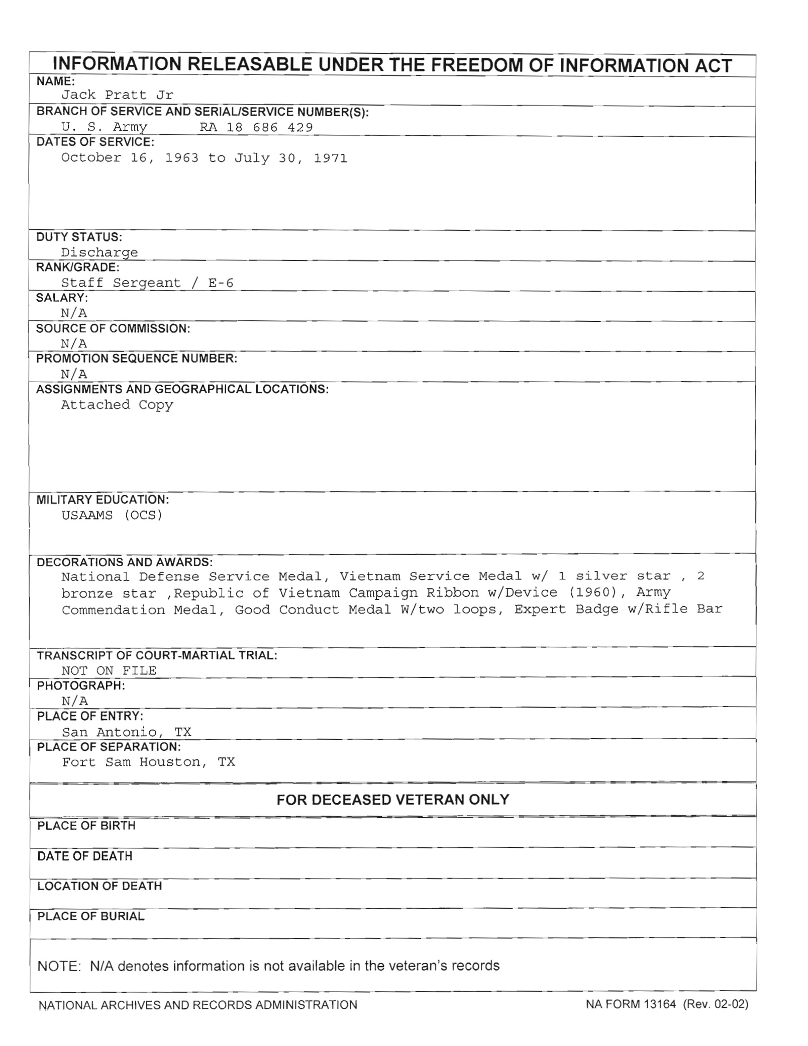 The one form says he was discharged an E-6, another said he was an E-7, it also says he had a bronze star? must have gotten tough as the company clerk? Reply
