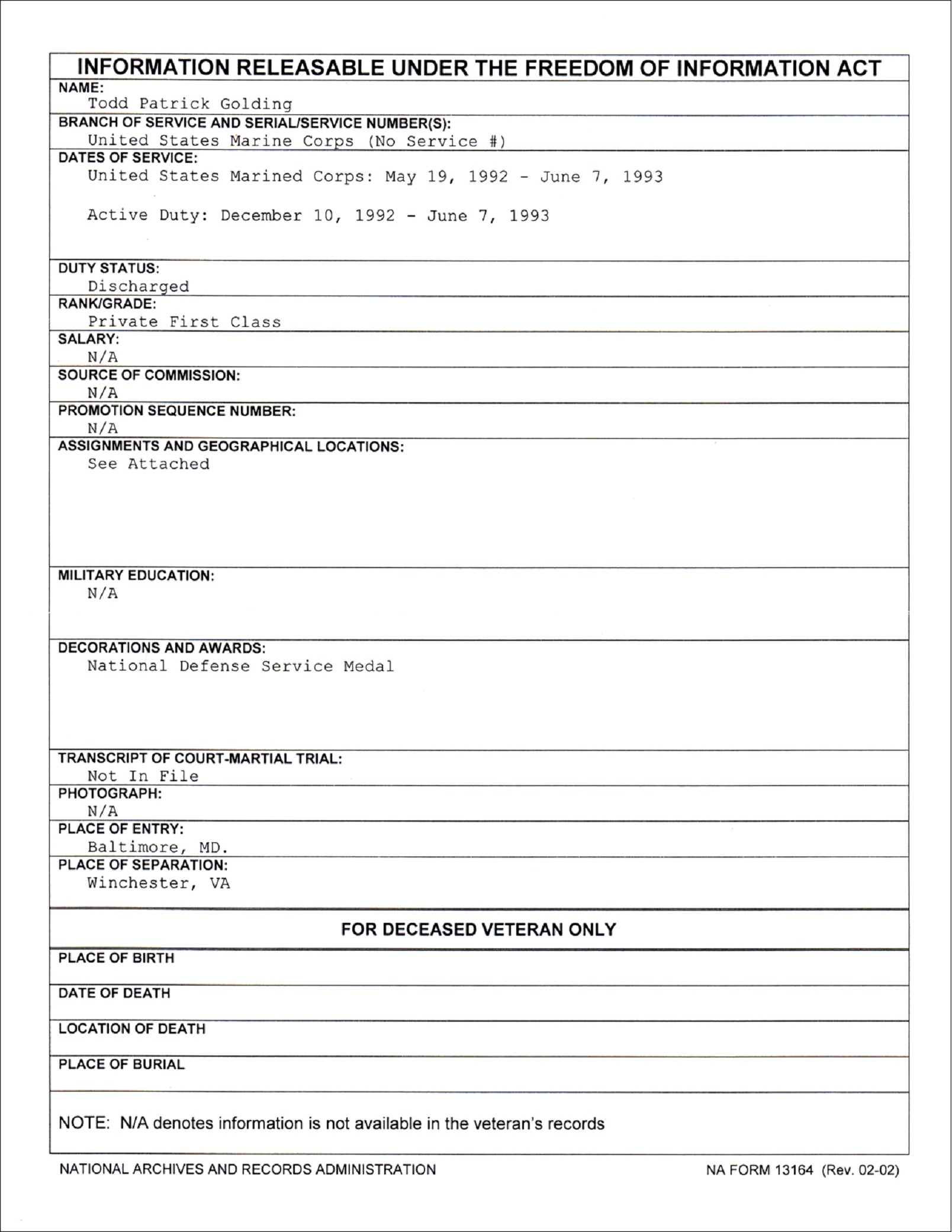 Todd Patrick Golding FOIA