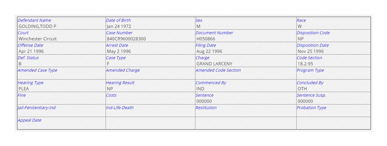 TODD P GOLDING – GRAND LARCENY – 1