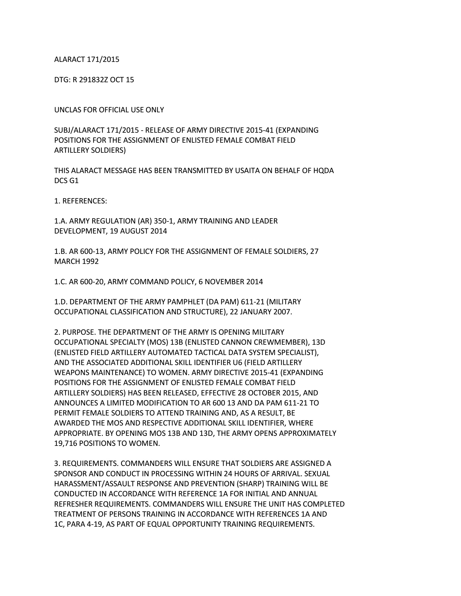 Artillery positions open to women