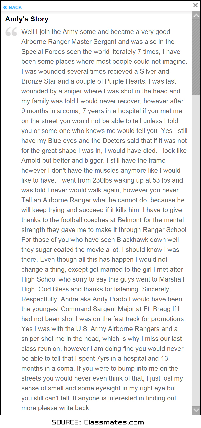 1. He went from 9 months in a coma to 13 months in the same post? Maybe he’s still in a coma and that would explain the load he dumped on his classmates. Also, he went from 230 pounds to waking from his 9-13 month coma at 53 pounds? 53 pounds? He should have done some research. I’m sure he will correct that to a more believable story in his next post. Jeez, what a load. This guy isn’t even trying.