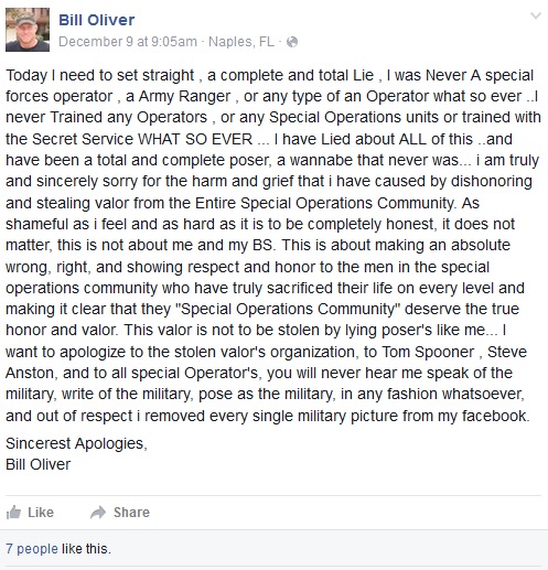 Bill Oliver Apology Updated