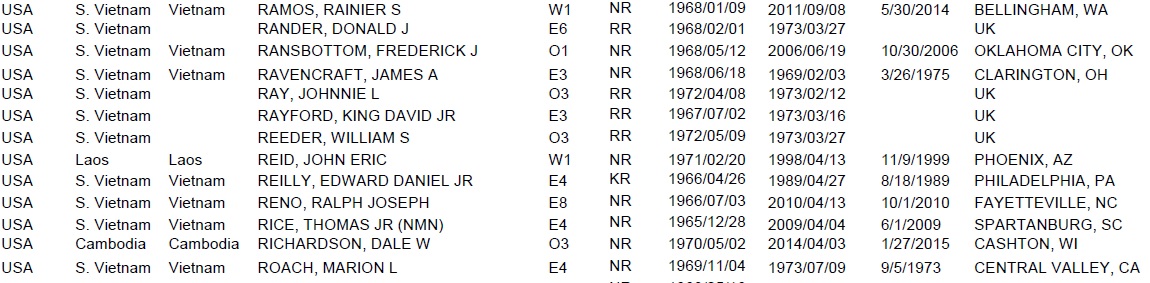 Reece POW list