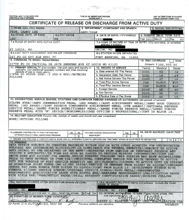Dan Page DD214 Reserves