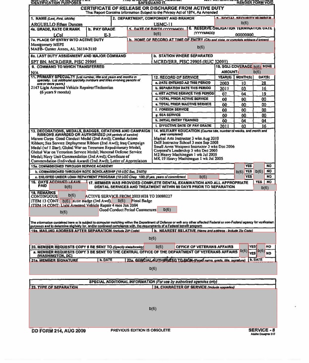 Also, 214 looks dicked up. Guy was in Iraq twice and Sea Service/Foreign Service counters are zero? Someone just wanted his ass out of there, pronto. Notice seps date and date of rank are same day. Whoopsie. Reply