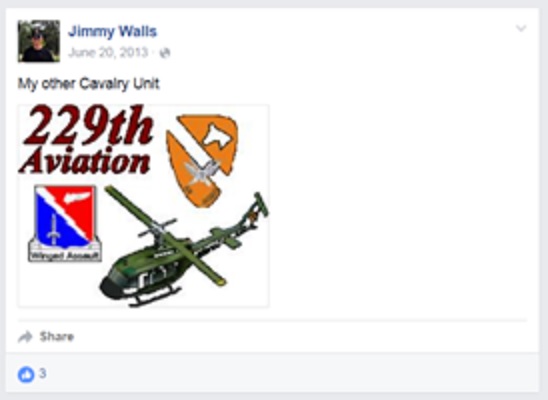 Thanks for the great job you do…. This Jimmy Walls for sure is a fake asshole… He never once served in the great 1st Air Cav Div. 229th Aviation Battalion, “Stacked Decked”, Assault Helicopters…. We had great Pilots and Crew Members that flew over in the Vietnam War and this wannabe is not one of them…. NOT… We are a very close group and our records or anyone that served ever heard of him and all of our unit records don’t show anyone by that name ever serving in the 229th AVN BN…. Thanks Johnny Hubbs SP4 Door Gunner and Webmaster, http://www.229thavbn.com