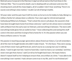 2. NOT TRUE… he opened Gettysburg Militaria and Antiques in July of 2014 ..at the 151st Gettysburg Re-enactment we went in… he had just got the place he said……. the doors were open ..but he was unpacking boxes… he said come back later