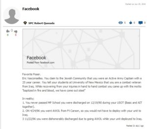 I conducted some research into this lying ass POS and found out the same things that are placed here and a whole lot more. The only thing that I found out to be actual truth about Eric VasConselles is that he actually is a member of the Tau Kappa Epsilon Fraternity. However they should disown him due to all of his lies and the fact that he is a poser that has stolen valor.