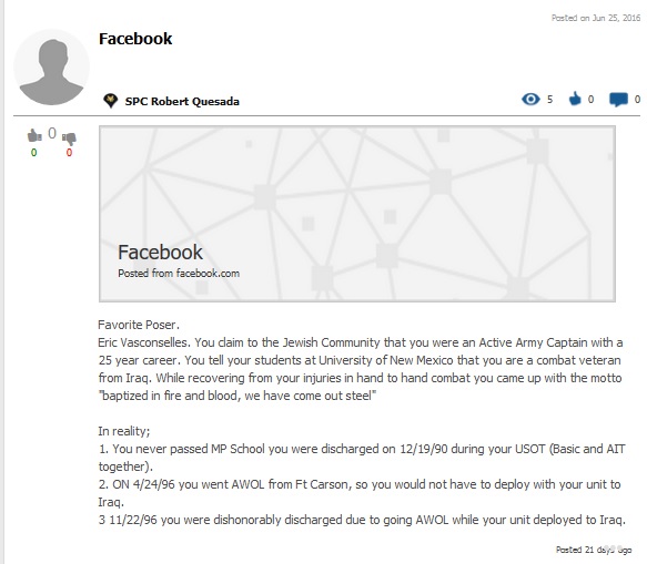 The sad part about all of this is that those of us that actually know him were all initially duped by his lies. He tells a good story until you start seeing the holes in all of the tales that he has fabricated. He caused a lot of distrust, animosity, backstabbing, dissention, and chaos in the New Mexico State Guard for the sole purpose of taking the focus off of him and his lies. The only thing that comes to mind when I think of this POS is that he is a coward and a habitual liar that doesn’t know the difference between the factual truth and his life of lies.
