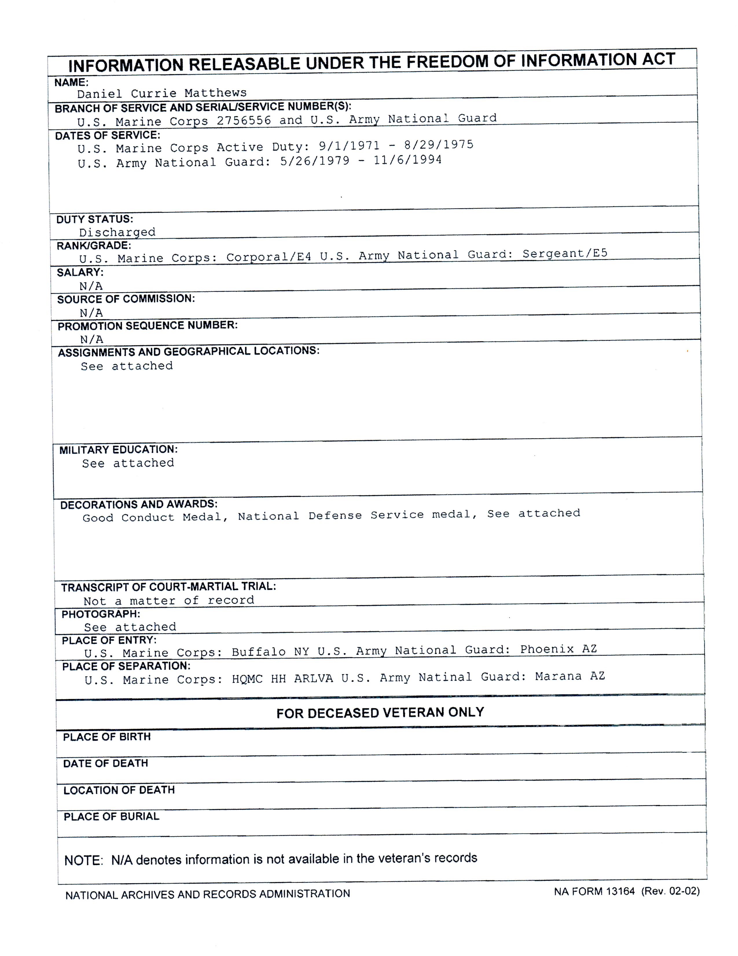 Daniel Matthews Actual FOIA