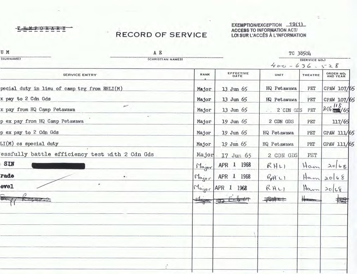 Brum Record of Service (Vietnam years)