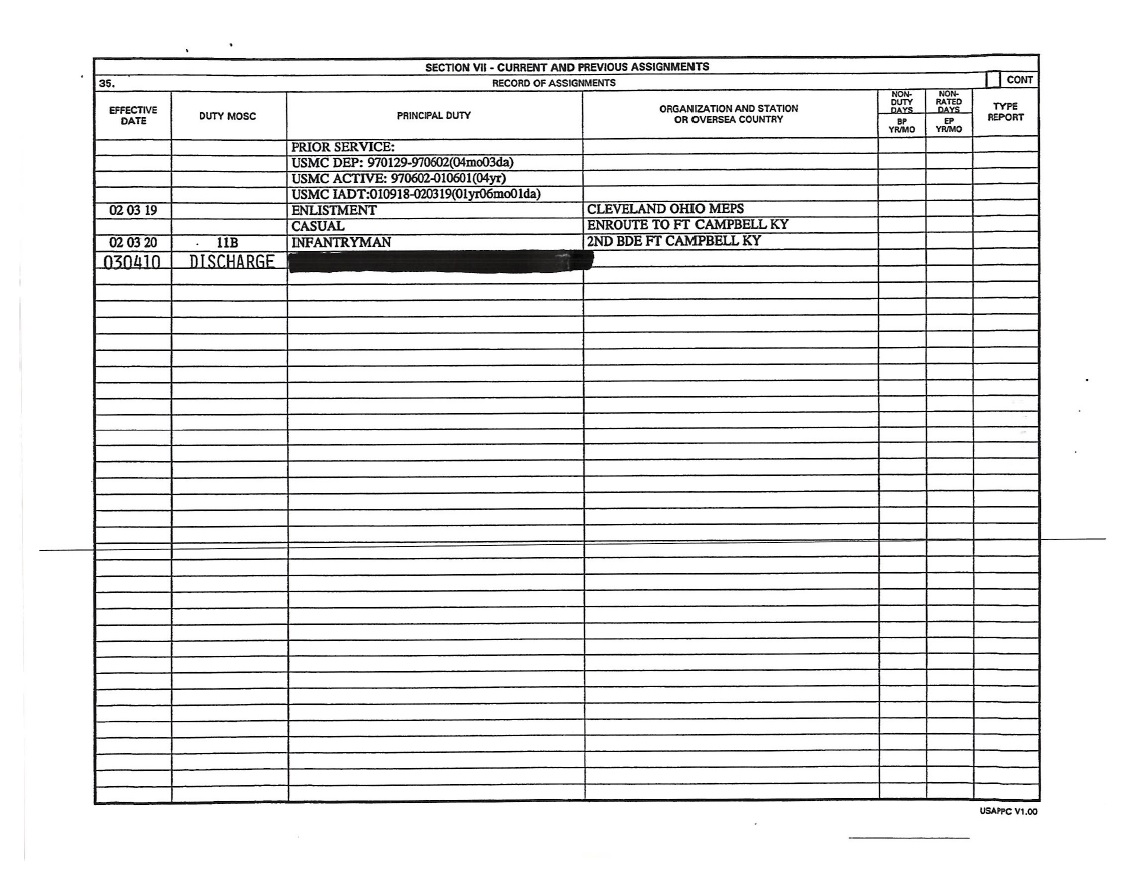 David Gentry FOIA ARMY Assignments