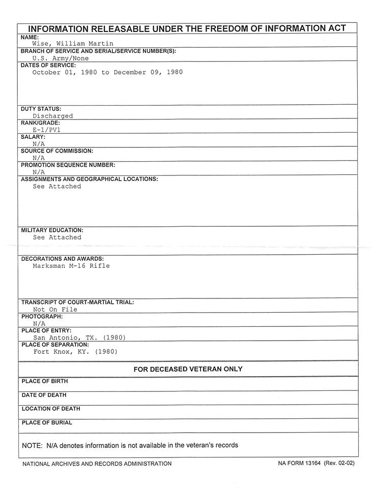 One thought on “William Wise FOIA AA”