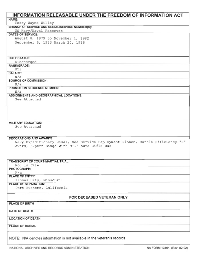 Terry Willey FOIA AA