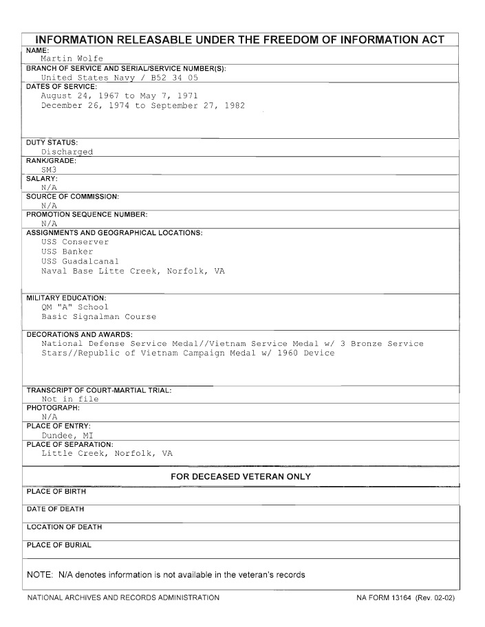 Martin Wolfe FOIA AA