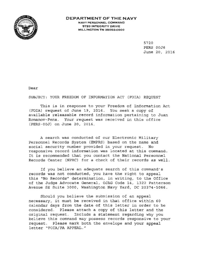 Juan Romanov-Pena FOIA 1