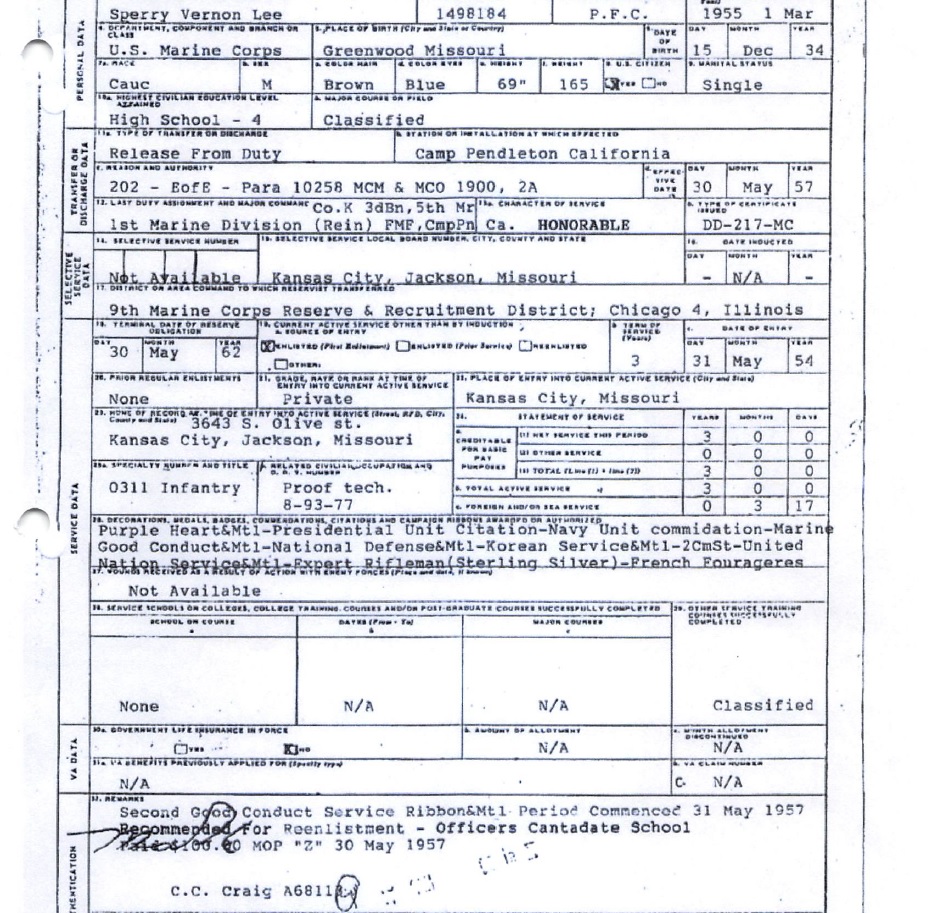 One thought on “Vernon Sperry DD214 forged