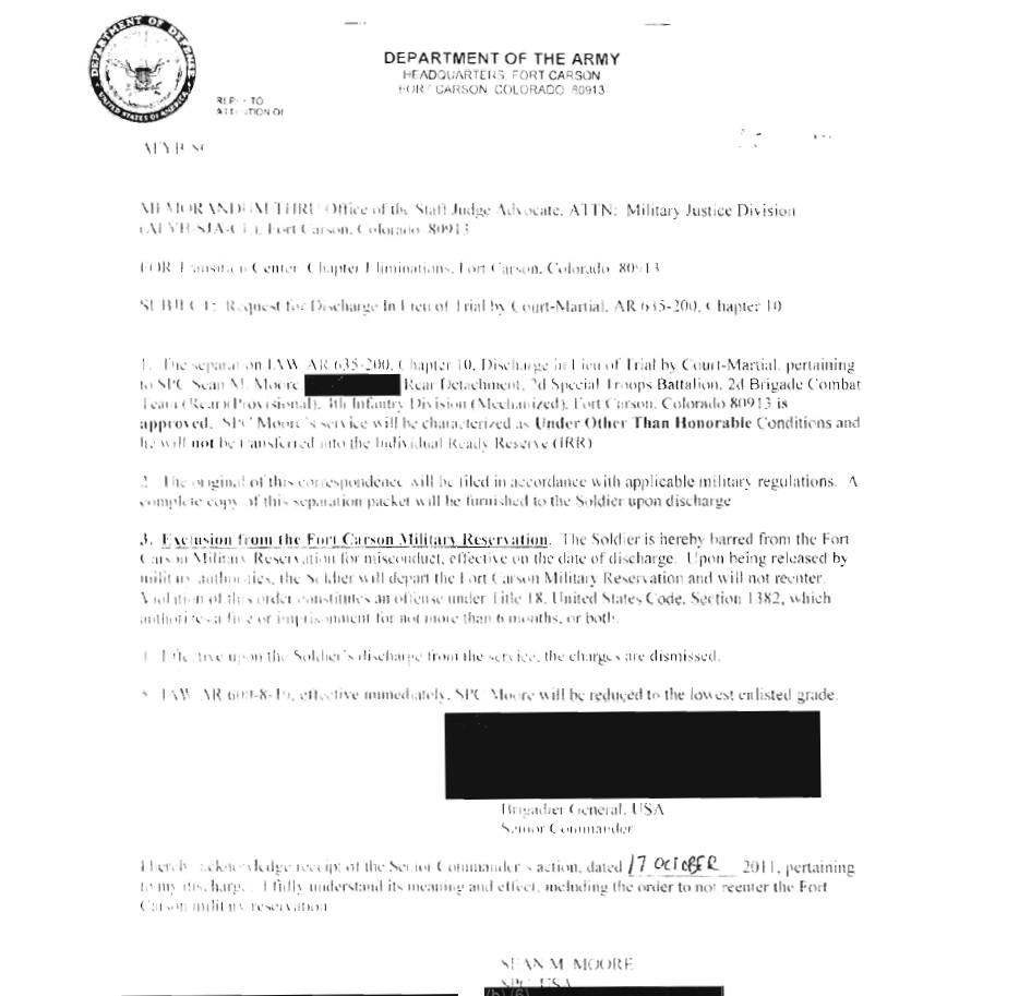 Sean Michael Moore FOIA Discharge in lieu of CM