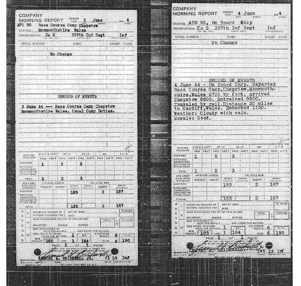 G Co 357th Inf 3 – 4 June 1944