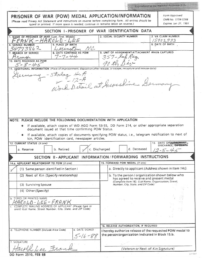 Harold Frank POW App