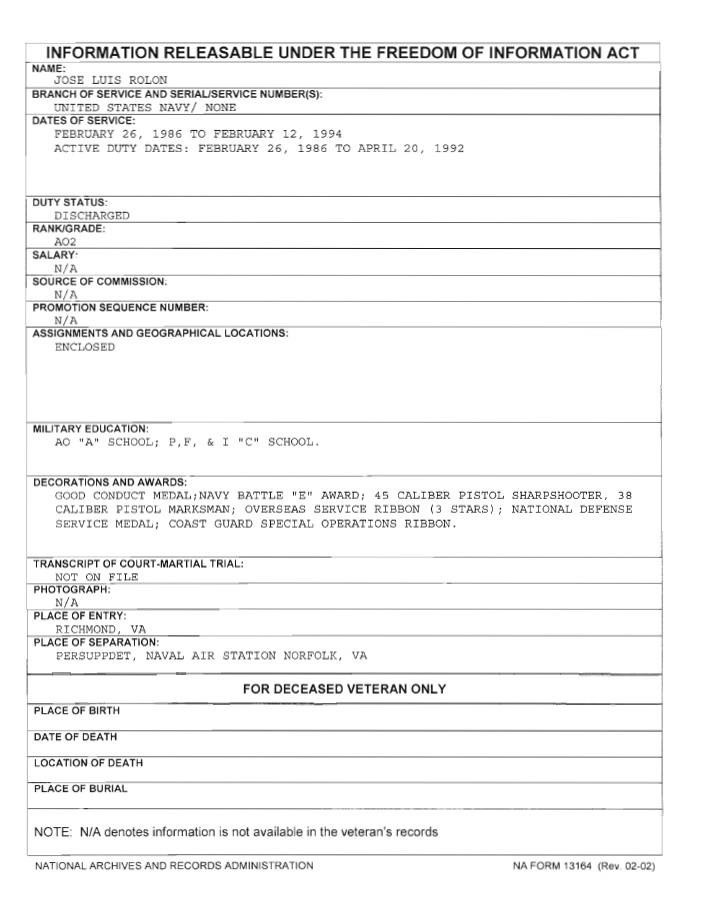 Jose Rolon FOIA AA