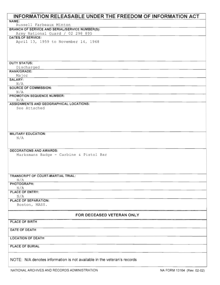 Thereafter, he states he attended medical school [GI Bill?] and became a surgeon, serving — as the above extracts reflect — from 1959 (age 32) to 1968 (age 41) in the National Guard.