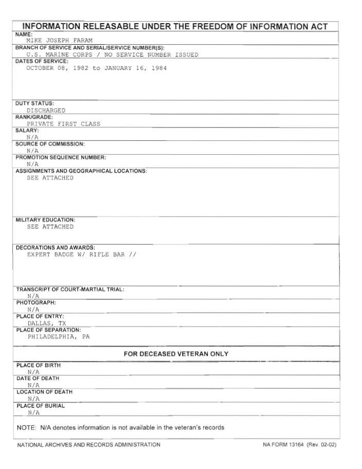 Mike Faram FOIA AA