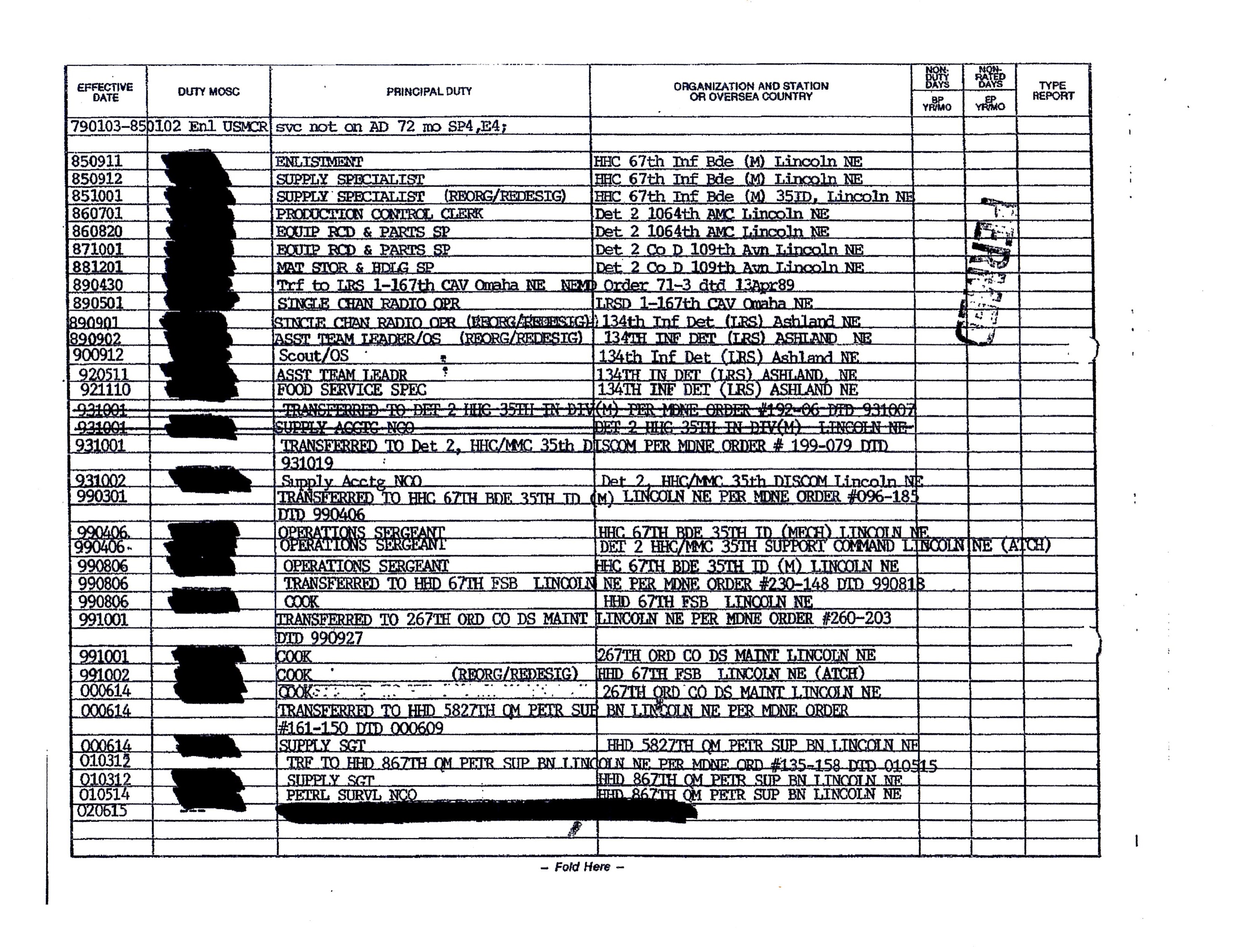 Gene Silverstrand FOIA Assignments 2 Army