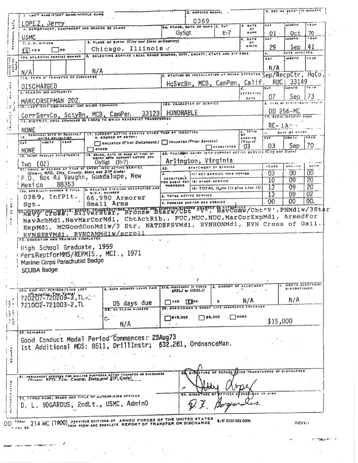 Jerry Lopez FOIA DD214 forgery 1