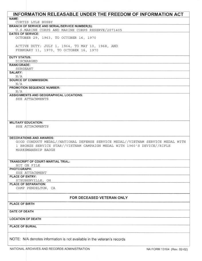 Curtis Lyle Busby aka Chris Hayden FOIA AA