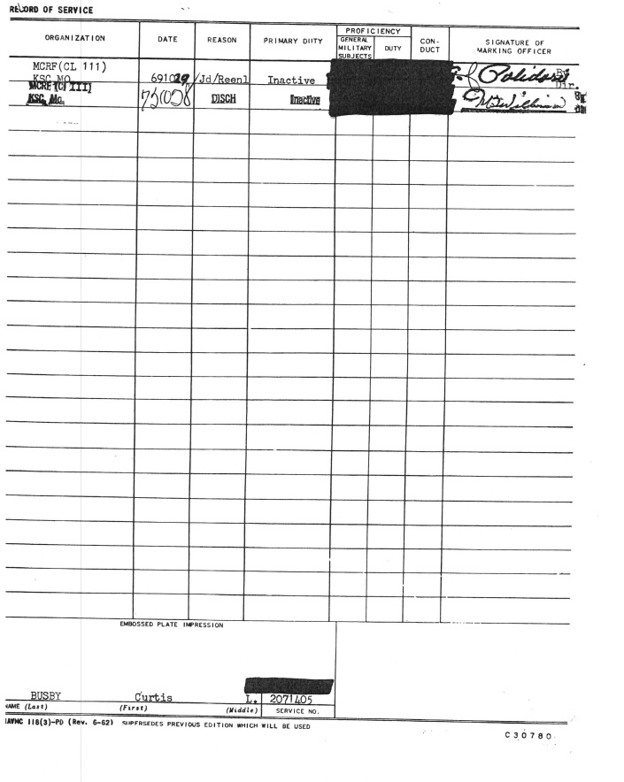 Curtis Lyle Busby aka Chris Hayden FOIA Assignment 1969-72