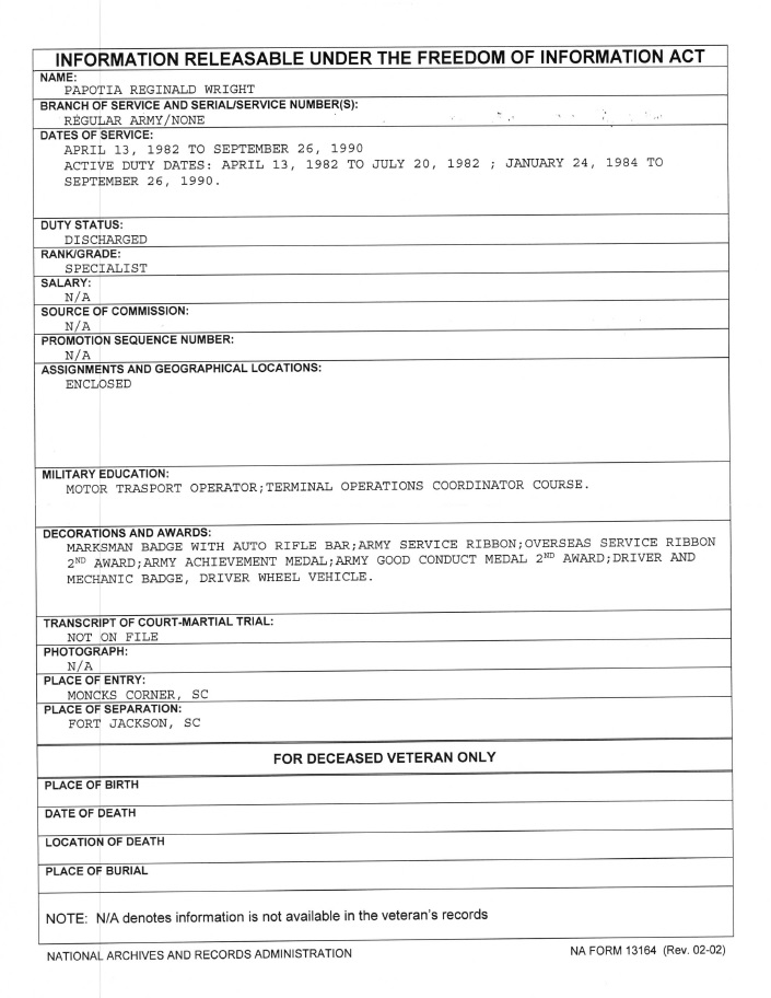 One thought on “Reginald Papotia FOIA AA”