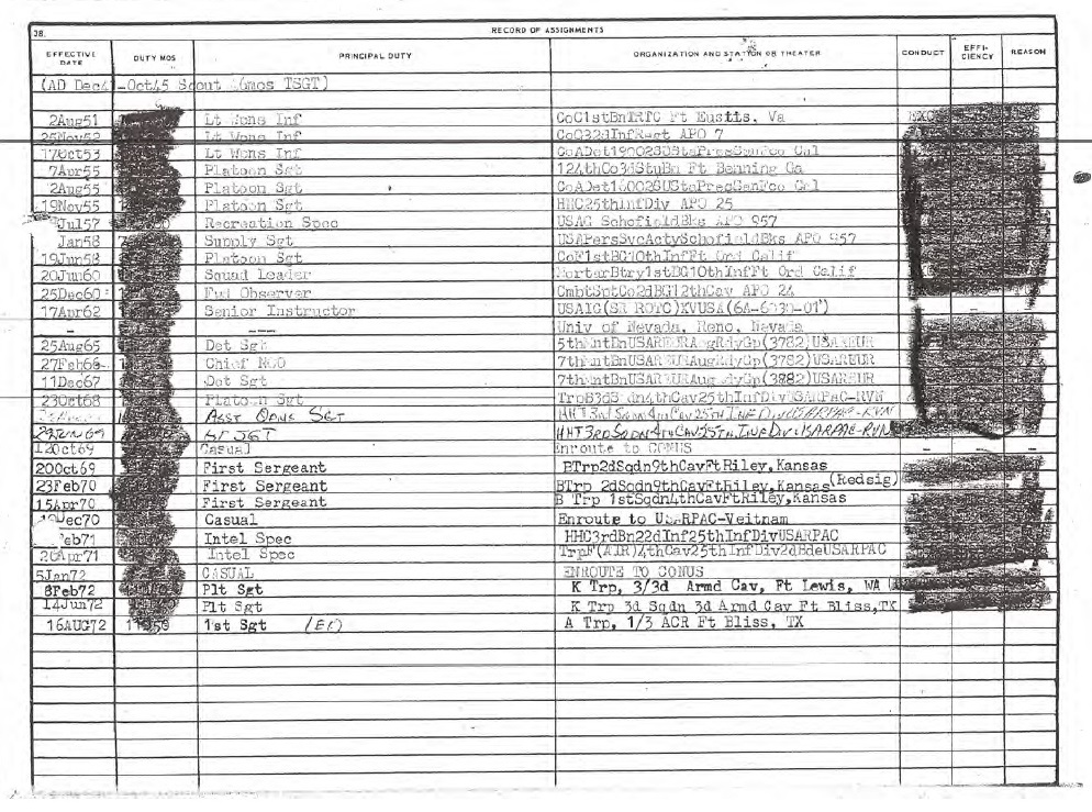 The record CLEARLY shows AD dec41-oct45 Scout 46mos TSGT and it shows Surigao HS Philippines for civilian education.
