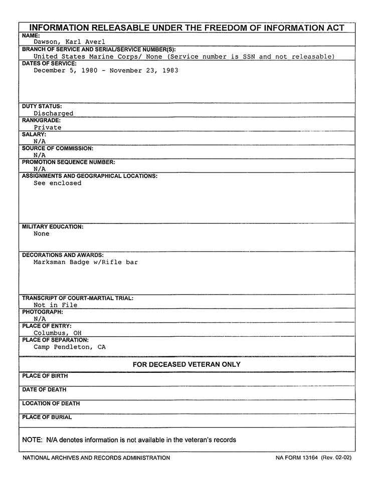 Karl Dawson FOIA AA