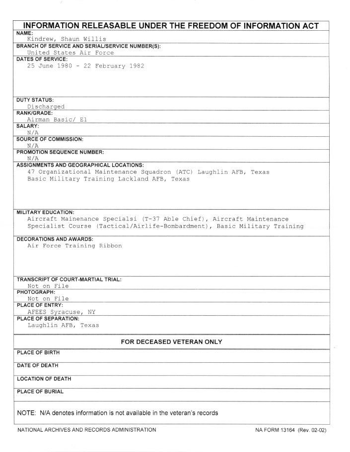 Shaun Kindrew FOIA AA