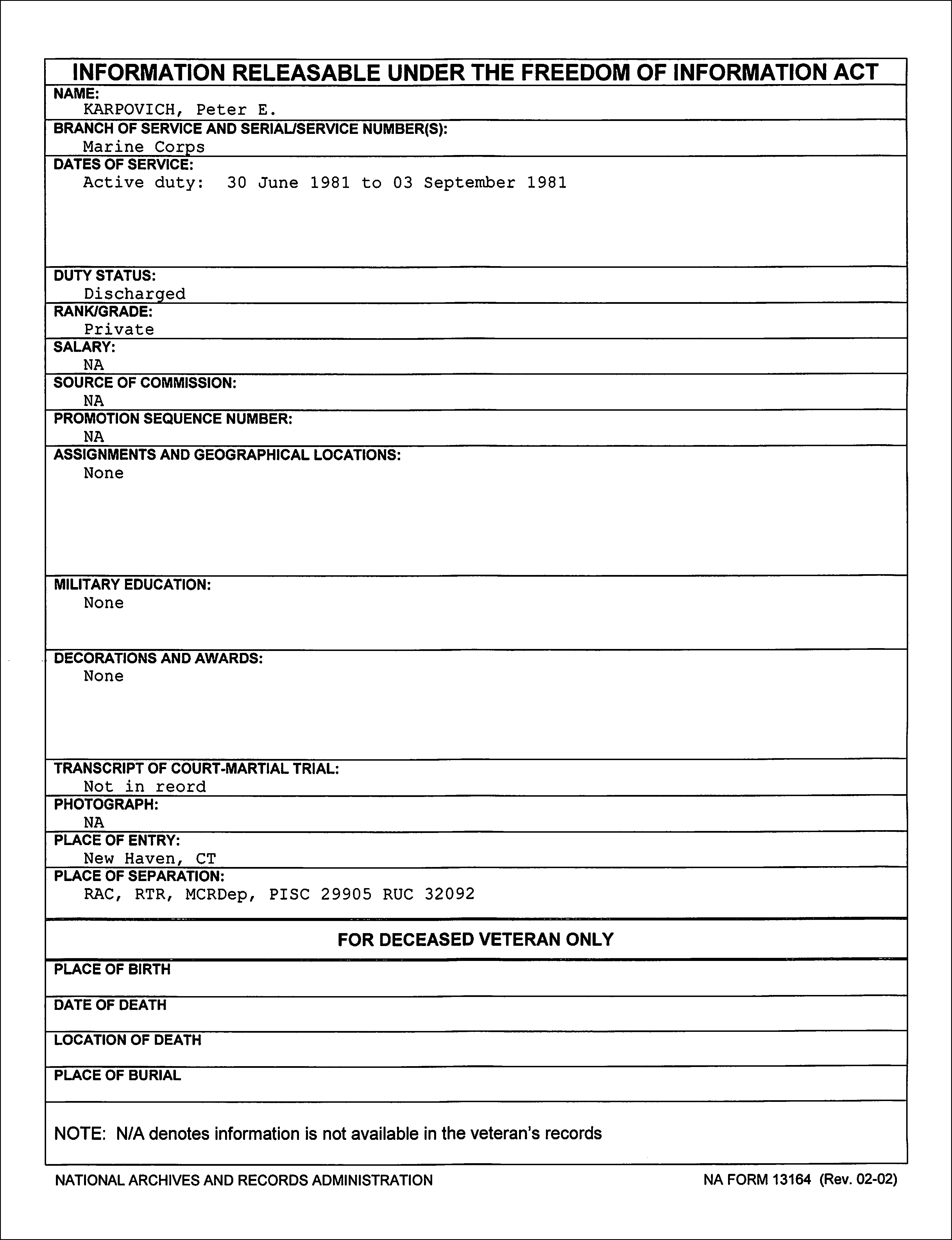 He was probably recruited by the SEALs after 60 days in the Corps. He was assigned in the super secret Walrus Team. I think we all know where the food stamps went. Reply