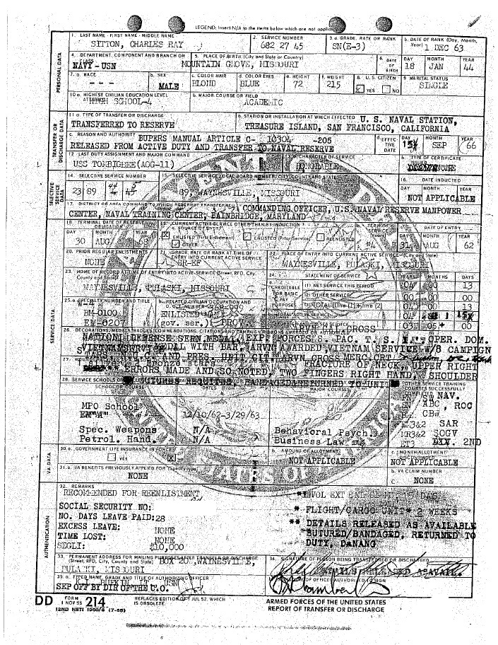 Sitton DD214 Forgery 2