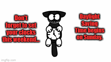 Don’t forget to adjust your clocks this weekend for Daylight Saving Time. Clocks advance an hour on Sunday morning. Enjoy your weekend!